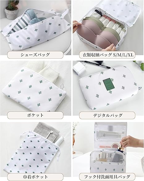トラベルポーチ アレンジケース 9点セット パッキングポーチ 洗面用具 旅行用 出張 衣類 整理 便利グッズ 靴用 下着収納 吊り下げ 小物