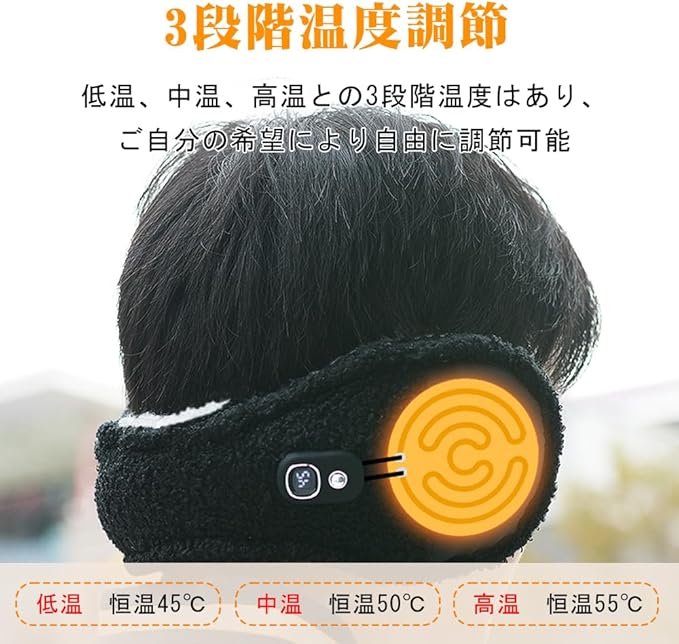 [VIGOUROUS] 電熱イヤーマフ イヤーマフ 耳当て 防寒 イヤーウォーマー メンズ レディース ヒーター付き 3段階温度調節 最長約