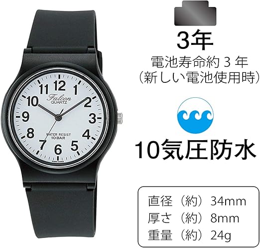 ・セット内容:本体- ブリスターパック入り、取扱説明書、保証書は取扱説明書に付属 日常生活用防水:10BAR 原産国:中国 駆動時間:新しい電池を入れた場合、約3年間