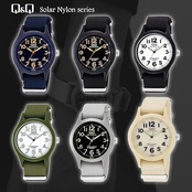 [キューアンドキュー] 腕時計 アナログ ソーラー 防水 ナイロンベルト 白 文字盤 H062-004 メンズ カーキ