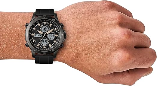 PINDOWS 男性用腕時計、メンズ防水アナログデジタルスポーツウォッチ、多機能高耐久アウトドアウォッチ(LEDバックライト、アラーム、スト