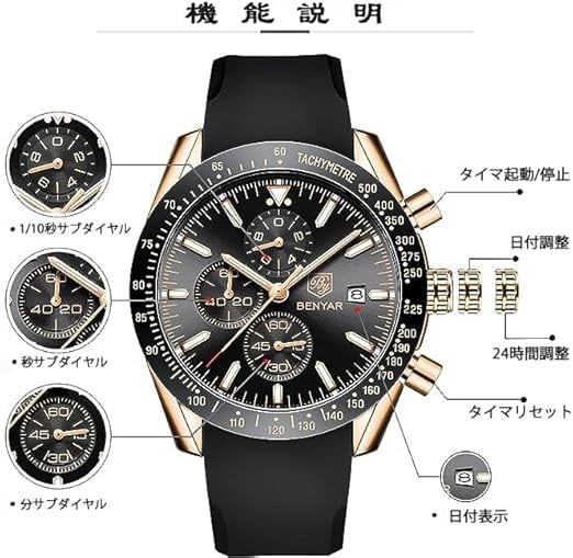 BENYAR AKNIGHT 腕時計 メンズ おしゃれ 時計 メンズ腕時計 夜光 クロノグラフ 固定ベゼル アナログ カレンダー うで時計