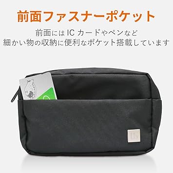 ■ポーチ前面にはICカードやペンなど細かなものの収納に便利なファスナーポケットが付いています。