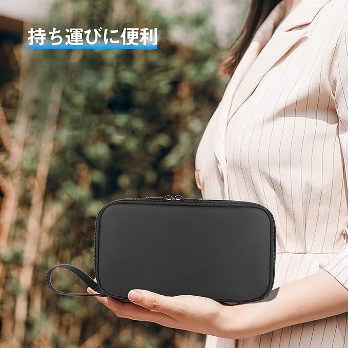 ・【旅行や出張での収納ポーチとして】旅行時や出張時、普段使いでの使用に便利なポーチです。 アメニティを入れてトラベルポーチとして、パソコン周辺機器を入れてガジェットポーチとして、充電器を入れてモバイルバッテリーポーチとして。ミニサイズのバックインバックとして、とっさの出し入れもスムーズに。使い方はさまざま!