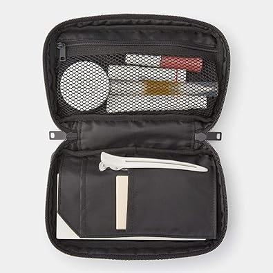 細かいメイク用品の整理に便利なポーチです。見開き出来るブック型。