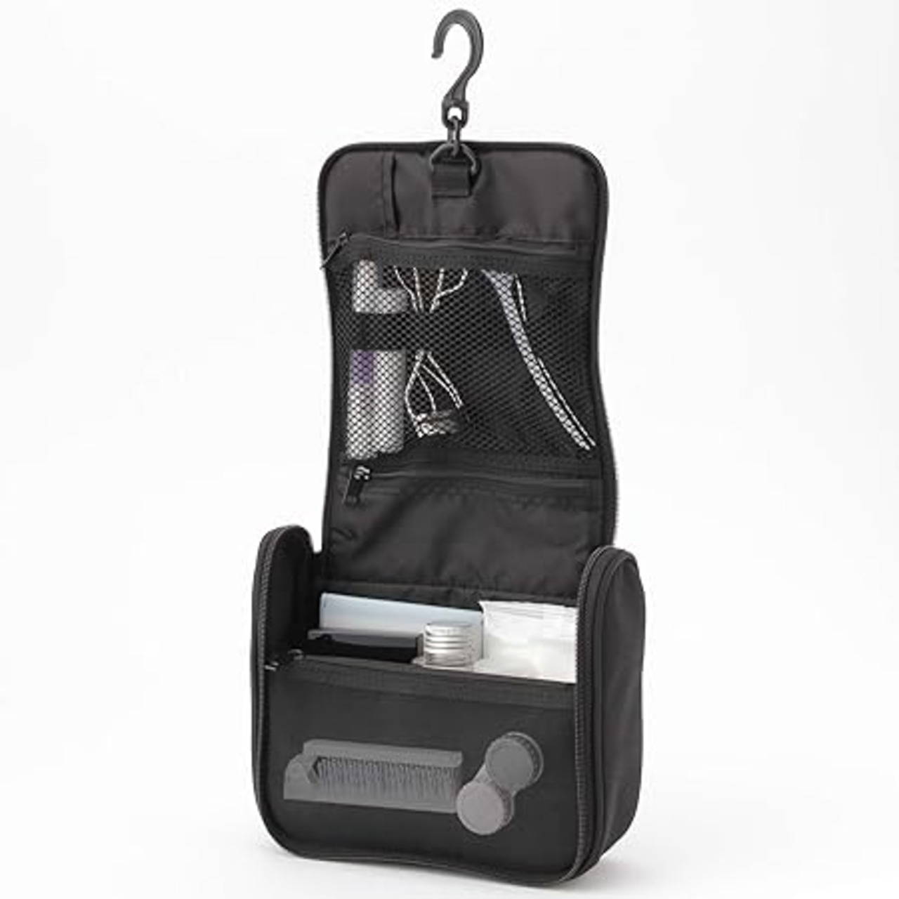 MUJI 無印良品 ポリエステル吊して使える洗面用具ケース 黒・約16×19×6cm 02125752
