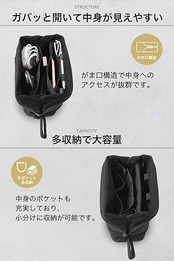 Evoon かわるガジェットポーチ 大容量 ガジェット ポーチ がま口で中が見えやすい トラベルポーチ 持ち手付き ガジェットケース 収納ポ
