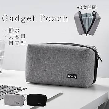 ガジェットポーチ 自立 小型 ジャバラ 大容量 コンパクト 軽量 丈夫 トラベルポーチ 撥水 仕切り ビジネス 持ち運び メンズ