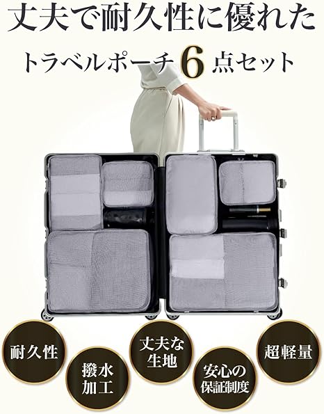 旅行用ポーチ トラベルポーチ 6点セット パッキングポーチ【軽量・薄型・耐久性】靴用 衣類 下着 洗面用具 収納 旅行 出張 防水 大容量