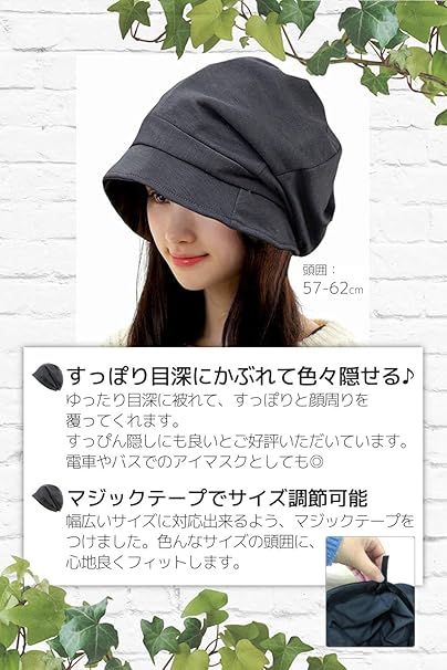 ・普段のコーデがぐっとオシャレになる、オールシーズン使える綿混製のレディース キャスケットです。この度、皆様のお声をうけて 頭囲62cmに改良しました!アジャスターで、調整していただくことにより、幅広いサイズに適応できるようになりました。ばっちりメイクしたときにも映えますが、ノーメイク隠しにとっても重宝する、気分の上がる帽子です。これからの季節、耳まですっぽり入るこちらの帽子は風が吹いても脱げにくく、デイリー使いしやすい、日よけにもピッタリなアイテムです。