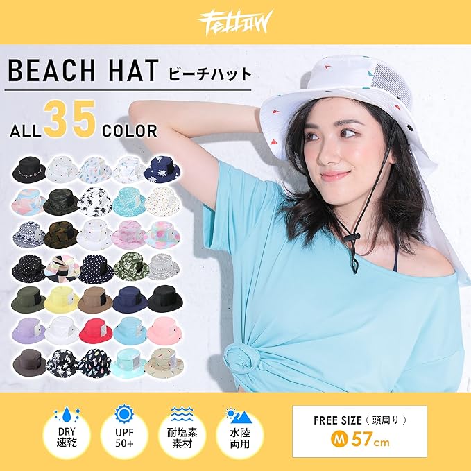 [FELLOW] フェロー ビーチハット 全33色 UVカット レディース ジュニア サーフハット サファリハット 帽子 アウトドア フリー