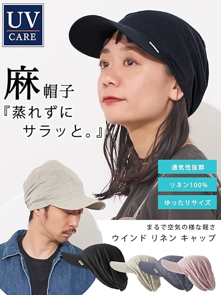 ・【優れた通気性・保温性のリネンキャップ】快適にかぶれるリネン100%素材の、薄くて通気性のあるツバ付きキャップ。超薄手なのにかぶると透けにくい仕上がり。綿の約4倍の吸水性で肌に密着せず、優しい爽やかな肌触りの麻は、暑い時には熱を逃がし清涼感がアップし夏に最適。