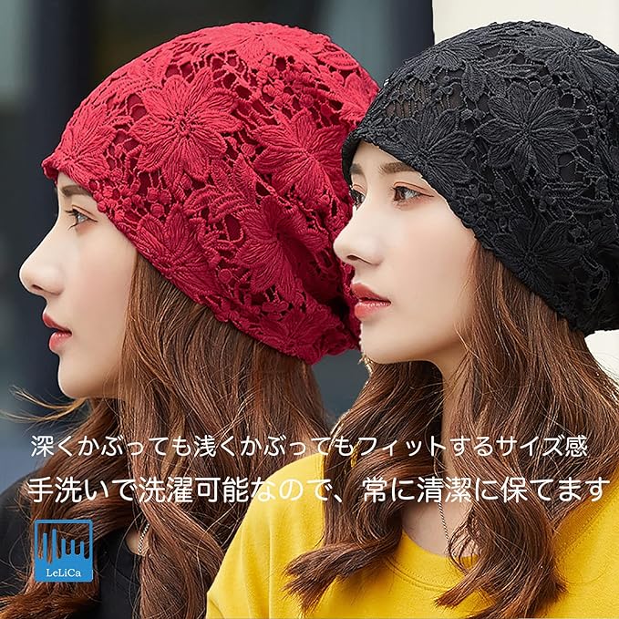 [レリカ] 日よけ 医療用 帽子 ケア ニット キャップ 帽 花 柄 女性 用 通気性 女優 小顔 uv カット レディース