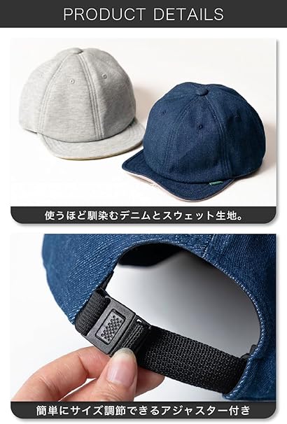 ・【短いツバがトレンドの理想的な形に拘ったキャップ】ベーシックなキャップはツバが長めで目元が隠れますが、短めのツバにすることによって、普段のファッションにも取り入れやすいでデザインとなります。また、幅広く使って頂けるようにデニムとスウェットの二種類の生地感をご用意しました。柔らかい生地感で、被り心地も抜群。長時間の着用でもストレスなく被って頂けます。