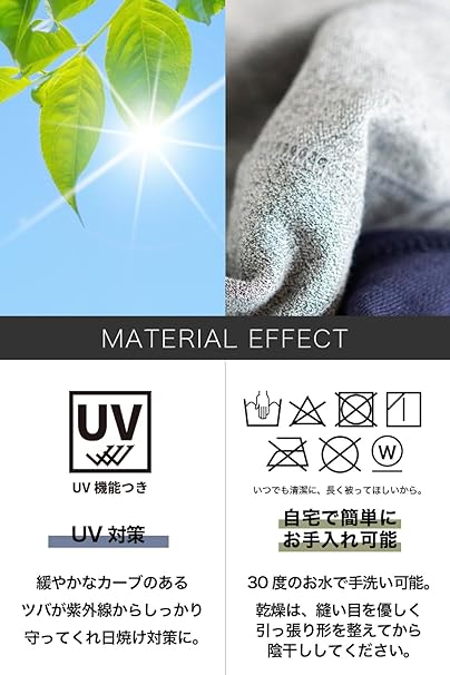 ・【いつでも清潔に、長く被ってほしいから】自宅で簡単にお手入れ可能です。30度のお水で手洗いが可能なので、汗ばむ季節も清潔に着用いただけます。