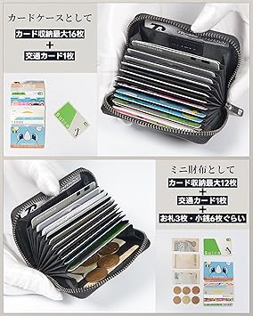 ・「一目瞭然な大容量」じゃばら式を採用したカードケース、カードは素早く取り出せます。コンパクトで薄いサイズで、最大16枚のカードを収納可能。カードだけでなくお札やコインもしっかり収められます。ミニ財布やコインケースとしてもご利用できます。外側のポケットには、交通カードスムーズに収納できるので、外出時の利便性が向上します。