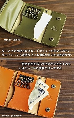 ・【仕様】折りたたみタイプ。キーフック5連。カードポケット1ヶ所。小銭入れ付き。