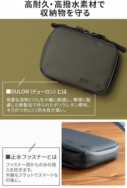 ・傷が付きにくく 防水 性の高い素材生地「DULON(デューロン)」を使用しています。ファスナー部分は水の侵入を防ぐ 止水 ファスナーを採用しています。シャッターリモコンやエンジンスターターなどの機器も収納が可能です。ファスナーは開閉しやすいダブルファスナーです。