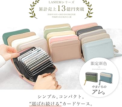 ・すべてのお悩み解決いたします!『スキミング機能でセキュリティ面を強化したい』 『ファスナーを強化して長く愛用してもらいたい』 『丈夫な素材で新しいカラーを入れたい』 『じゃばら型で大きく開いてカードを探しやすくしたい』そんなお悩み・ご要望にお答えするためカードケースを開発しました。LASIEMのカードケースは”上質なクオリティで圧倒的な使いやすさ”を実現いたしました。