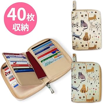 猫柄 大容量 カードケース 40枚収納 スキミング防止 キャンバス地 かわいい コンパクト カード入れ (白)