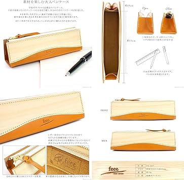 [フィー] feee ペンケース メンズ レディース 本革 栃木レザー×天然木 筆箱 三角ペンケース 日本製 【FE-3207】 (モカ(ウ