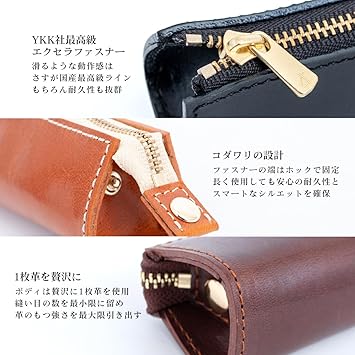 ・【YKKの高級ファスナーを使用】 YKKファスナーの中で最も高級なEXCELLA(エクセラ)ファスナーを使用しています。スライダーはなめらかで美しく、耐久性にも優れています。シーンを選ばず使えるペンケースは贈り物にも最適。箔押しロゴを施した化粧箱に入れてお届けします。
