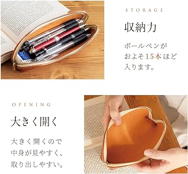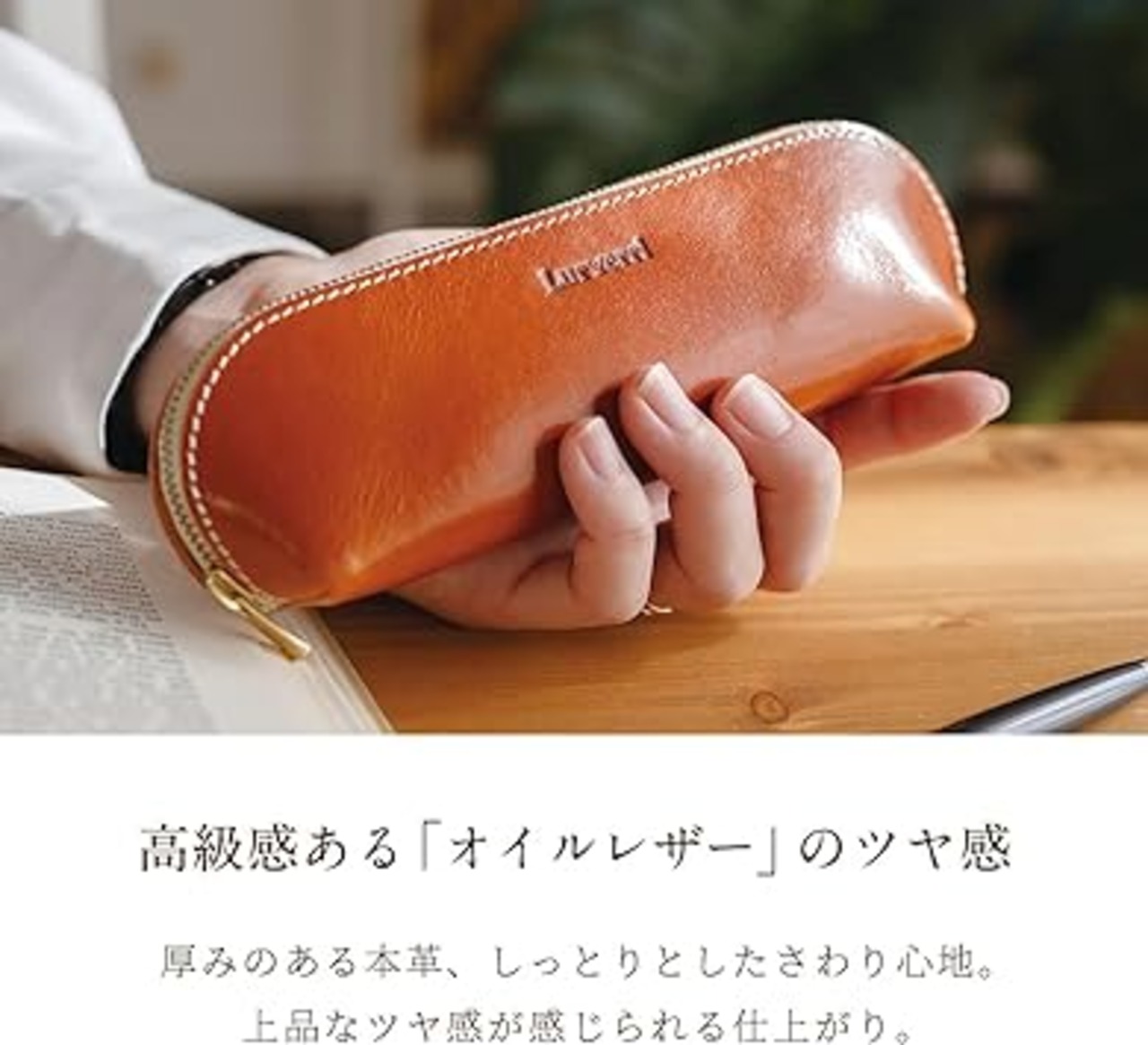 ・【大人のためのペンケース】 曲線を描くフォルムが美しい本革製ペンケースです。毎日使うものだから、上質なオイルレザーの一枚革を贅沢に。しっとりとした手触りと艶。使うほどに本革ならではのエイジングが加わり、愛着の増すアイテムです。