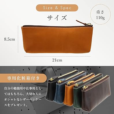 ・【経年劣化を楽しむ】筆箱の牛革表面が摩耗することで、革の色調が変わり、革表面に豊かで多彩な光沢が生まれます。