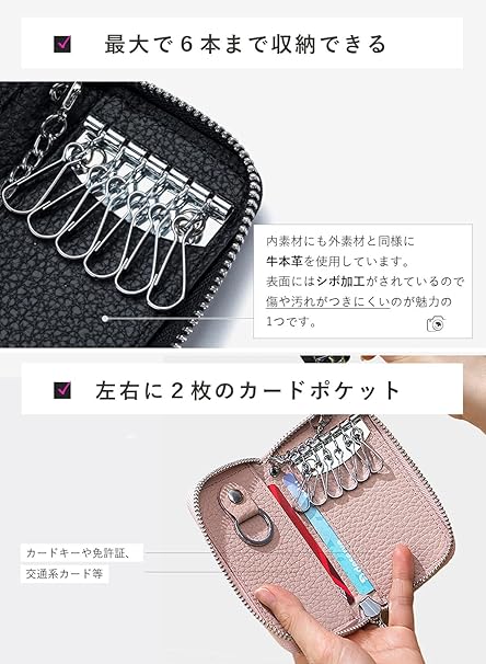 [ELEGANCE−e] キーケース スマートキーケース スマートキー対応 メンズ レディース 本革 シボ革 コンパクト 小さめ 6連 カー