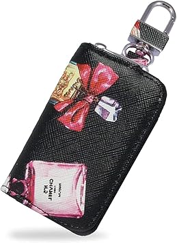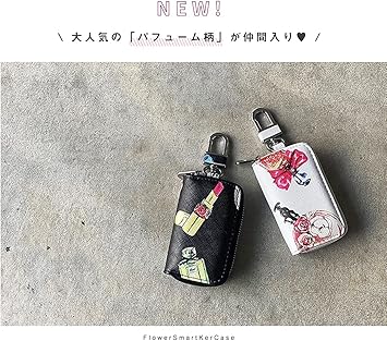 [ジゼル] スマートキーケース レディース キーケース キーレス スマートキー ケース コンパクト フック付き キーリング 花柄 (香水ブラ