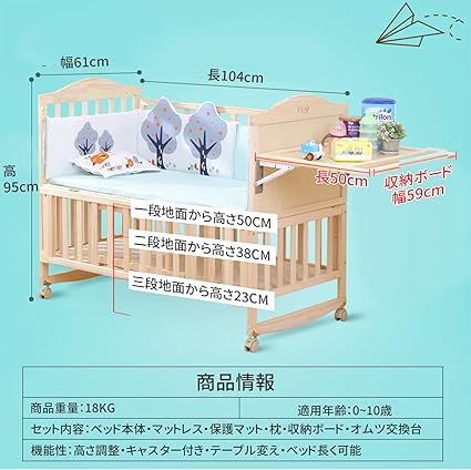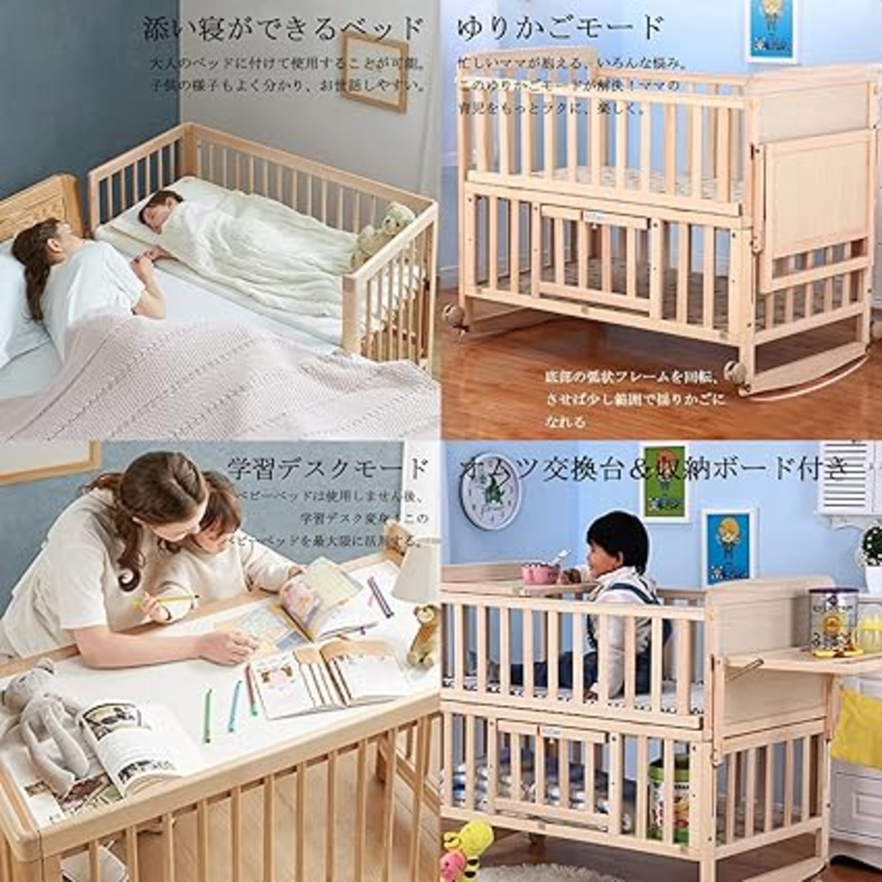 ・★頑丈でしっかり:丈夫でしっかりした木製ベビーベッドとして、安定感もあり長く使えます。