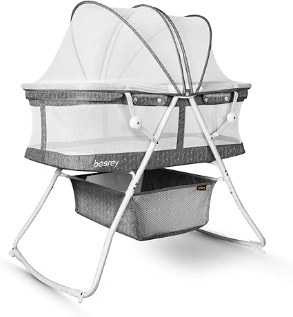 besrey ベビーベッド ベビーベット 折りたたみ式 折畳 添い寝 揺りかごに変身 2階段高さ調節 収納かご付き 収納便利 持ち運び 新生