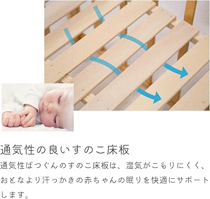 通気性ばつぐんのすのこ床板で汗っかきの赤ちゃんの眠りを快適にサポート♪