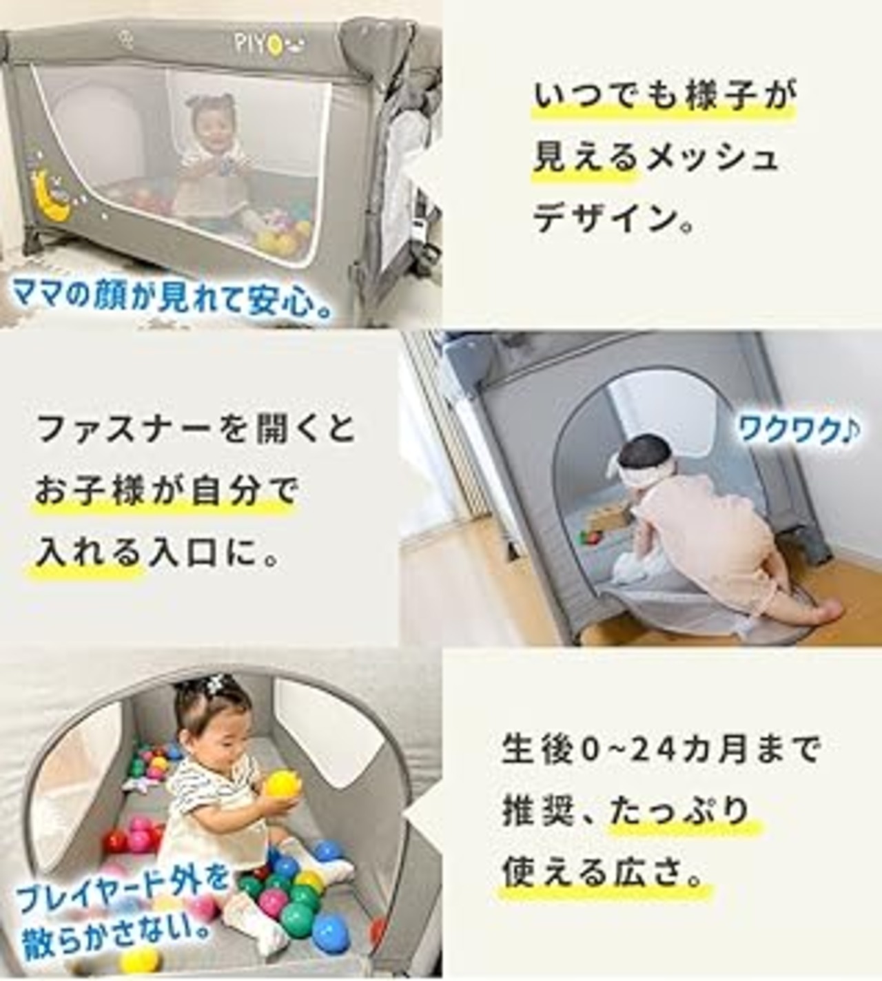 ・【簡単に折りたたみ可能】プレイヤードは使用しない時邪魔ですよね。しかしこちらは簡単に折りたたみも可能です♪そのため持ち運びも楽々です♪さらに組み立ても折りたたみも工具不要♪