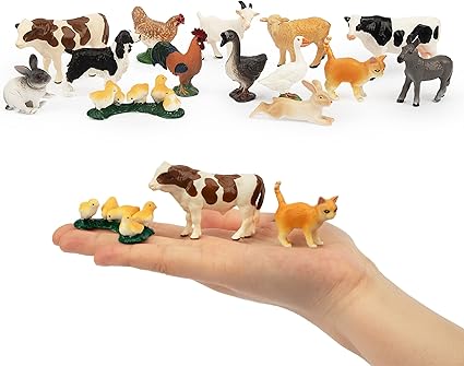 TOYMANY 14PCSミニ農場動物フィギュアセット ミニ動物フィギュア リアルな動物模型 養殖場 農場 家畜 PVCプラスチック製 おも