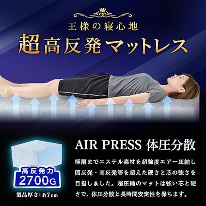 新日本通販EX マットレス シングル 日本製 3層式 体圧分散 高反発 極厚 マット 防カビ 抗菌 防臭 硬め 固め 約7cm エアープレス