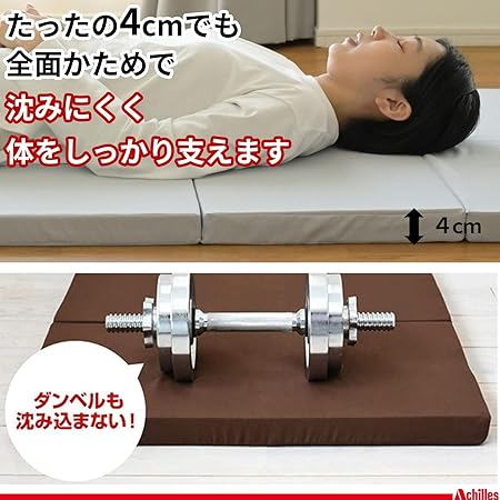 [アキレス] マットレス 折りたたみ 硬め 高硬度(265N) 腰痛 スモール セミシングル (幅60×長さ180㎝) 抗菌 消臭 厚み4㎝