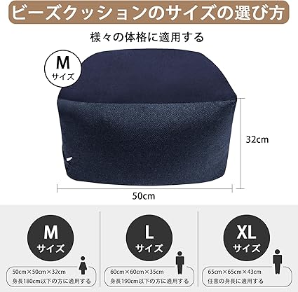 ZORZA ビーズクッション50x50x32 cm怠け者ソファ豆袋寝そべるベランダ寝室ビーズクッション安全無臭取り外し可能 (ネイビー)