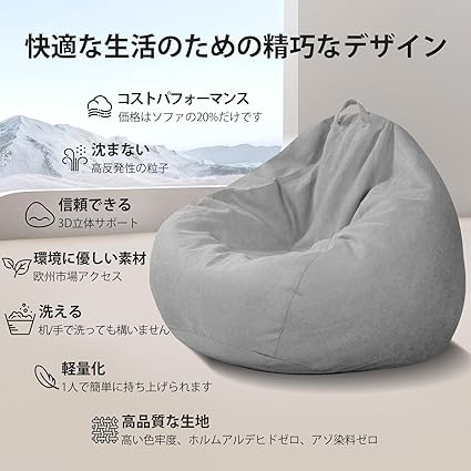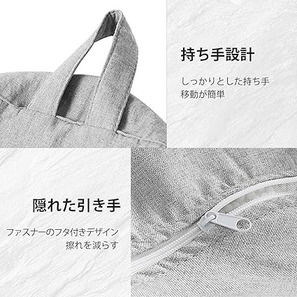 ・【洗えるカバー】ビーズソファのカバーは手軽に取り外し可能で、洗濯機で洗えるタイプで、お手入れ簡単です。そして、このビーズクッションには隠しファスナーというデザインがあり、金属ジッパーが床を傷つけることが防止できるだけでなく、子供を傷つける心配がありません。【取っ手付き】取っ手が付いており、持ち運びやすくて掃除や引っ越しなどの場合に超便利です。