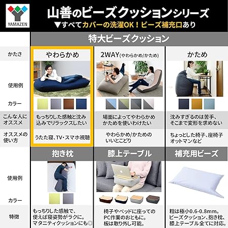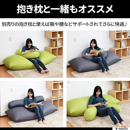 [山善] ビーズクッション (ソファー) 特大(幅155×奥行70×高さ45㎝) やわらかめ カバーが洗える ビーズ注入口あり グレー BS