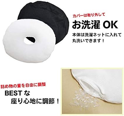・骨盤を立てて、きれいな姿勢を促すあぐら用クッション。だ円形のドーナツ形で、内容の量を調節できます。