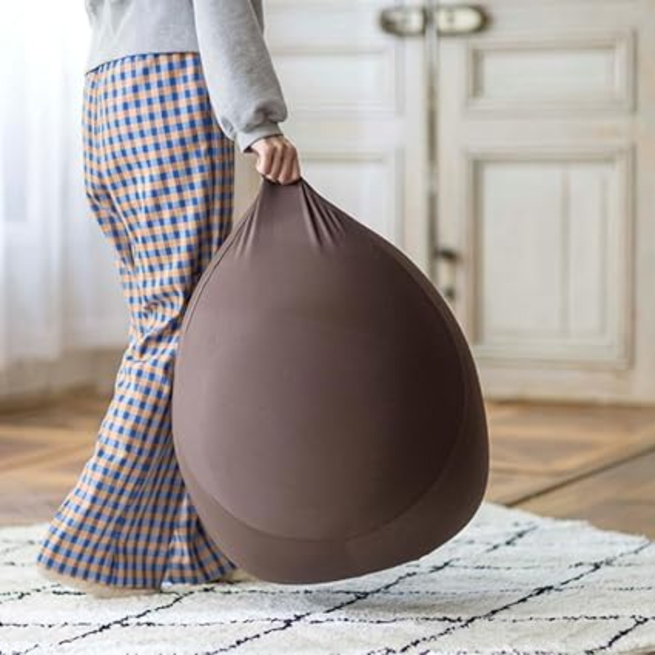 伸縮性のある生地と流動性の高いパウダービーズの相乗効果で、ふんわり気持ちいい感触の小さめチェア●可愛らしい洋なし型で少し小さめのサイズのフィットチェア!
