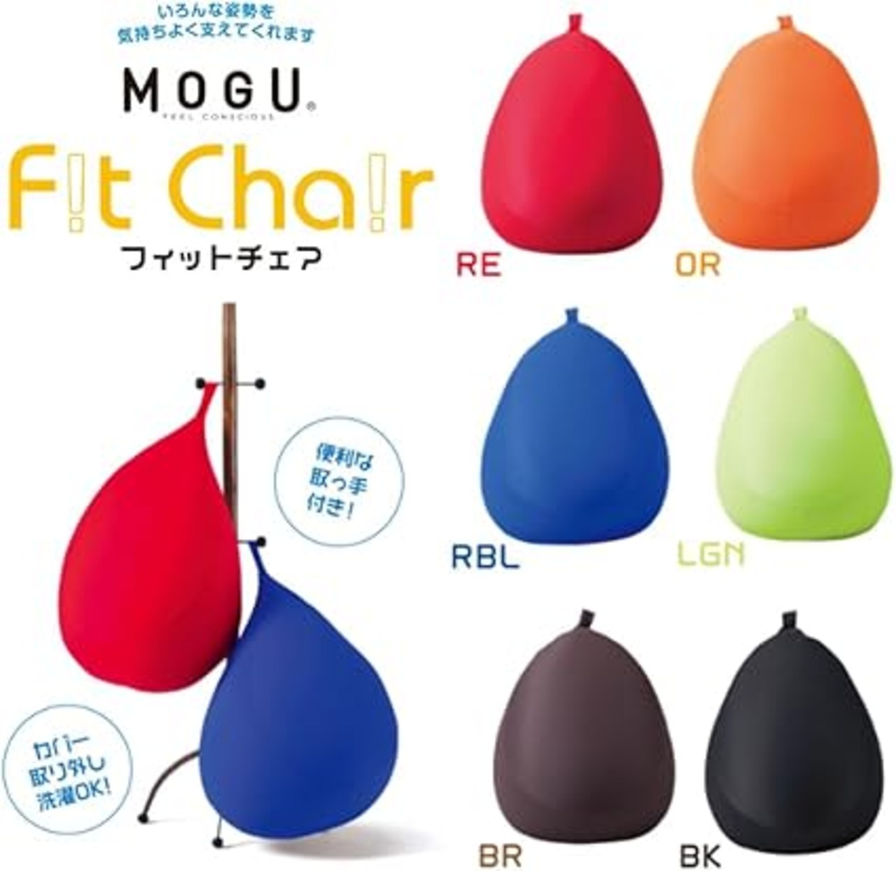 MOGU(モグ) ビーズクッション 黒 フィットチェア カバー付 ブラック (全長約55㎝)