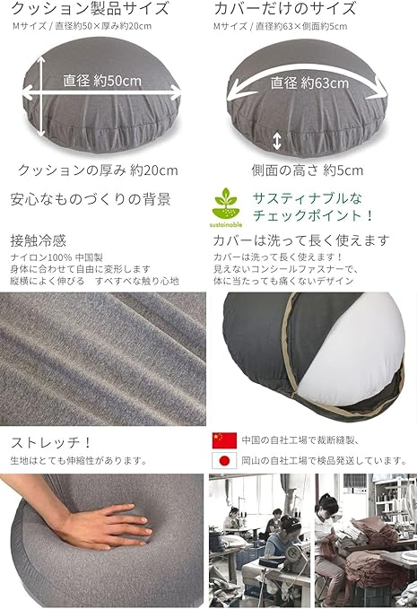 ・カバー素材 接触冷感ストレッチ生地 自社の中国工場で縫製しています。