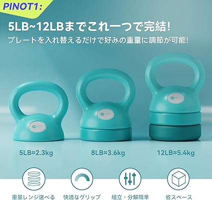 ・【可変式ケトルベル】MIKE SPORT調節可能なケトルベルは使いやすく、トレーニングレベルに合わせて重量を調節できます。スプリングクラスプを押し下げ、反時計回りにひねるだけで、12ポンドから8ポンド、5ポンドに変更できます。