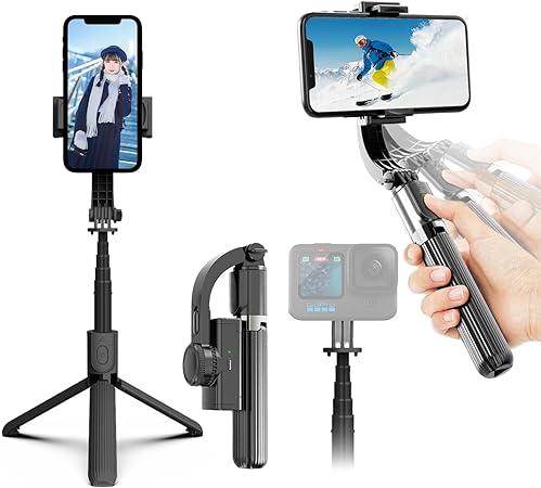 【2024最新手ブレ防止自撮り棒 ジンバル三脚スリーインワン一体三役】スマホジンバル【Bluetoothリモコン付き】スタビライザー 片手持