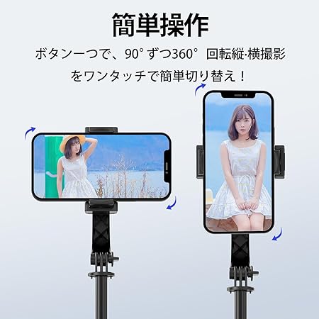 ・【スタビライザー機能つきセルカ棒・ブレずに動画撮影】普通の自撮り棒の場合、歩きながら動画撮影をしたいとき、どうしてもブレてしまいます。この問題を解決するために、最新版デザインのモーターを開発し、パンチルトの中にスタビライザー機能を追加しました。自動的にバランスを取れるので、歩きながらの撮影でも手ブレや揺れなどを補正し、動く被写体もしっかりキャッチし、高品質な動画や自撮り動画を簡単に撮影できます。360°回転可能なホルダーにより、スマートフォンを水平または垂直に配置することができ、簡単に完璧なショットをキャプチャできます。日本語取扱説明書付き、操作が簡単で、初心者の方でも楽に使えます。