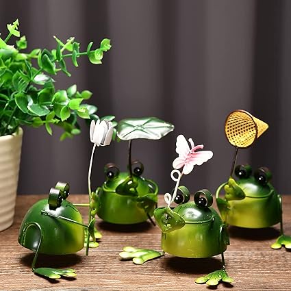 ・【パッケージ内容】鉄製のカエル飾り物4個セット。葉、網、花と蝶のカエル各一つです。単品サイズ:9.5 * 6 * 8cm。