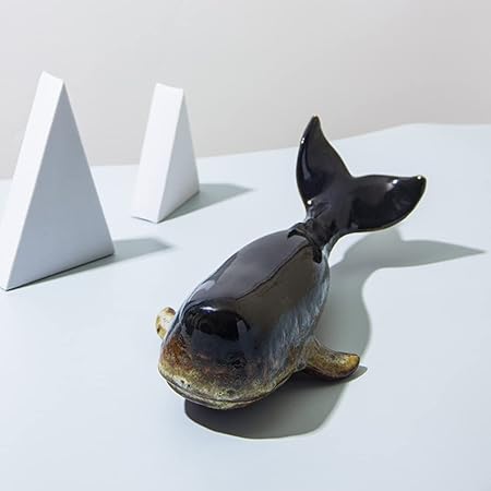 セラミックスクジラの置物動物の彫刻:クジラの像の紙崇拝の海動物置物卓上飾り装飾的な展示の中心的なまったく