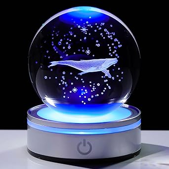 ・【3Dレーザー彫りで 水晶玉】おしゃれな「3D くじら」 がグレードの3Dクリスタルに内蔵しています、レーザー彫刻技術を使用して、決して色あせない。LEDライトでクリスタルの中の3Dアートが輝き、幻想的な画像で心に癒しを与えてくれます。色は明るい暖かく、風合いは自然であり。ます女性への誕生日完全プレゼントにおすすめ!!!!